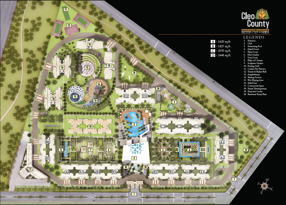 Cleo County of noida sector-121 is exquisitely attractive and transcendent residential apartment comprises with 3 and 4 Bedrooms flat systems. ABA Crop Group develops Cleo County noida all the flats are extensively designed with understanding of not only passion but also the dream of contentment and conveniences. Cleo county flats inventory easy available on new booking and resale. in good Cleo County is best designed by choosing higher-class amenities and soothes as per living demands and desire. In the very posh location of Sector-121, Noida project ABA Crop Group is glittering vibes for welcoming into complete luxuries and best enjoyment. By seeing the exclusive modern needs and high class lifestyle, the project is enjoyment spread over 25 acres which focus at providing resort style living to the humanity with a host of world-class modern amenities to appreciate! As an architect the comfort was to blend immemorial with the ultra-modern to synergies consistently the Egyptian theme with synchronic lifestyle, while imparting the entire development with an international aesthetic.