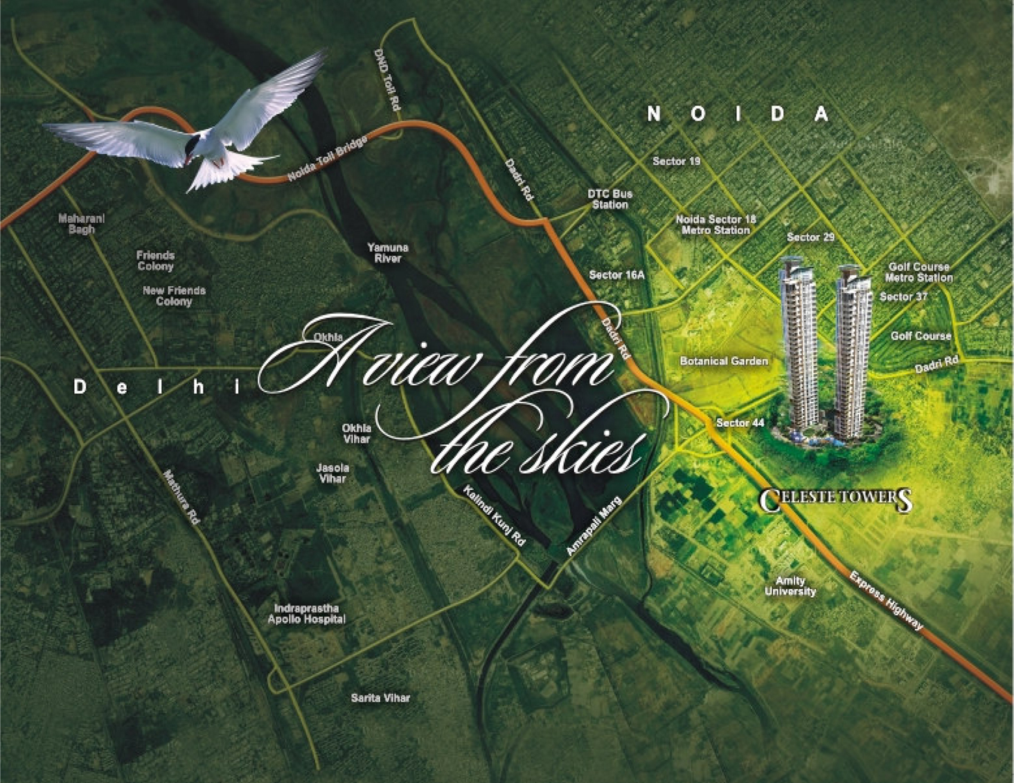 Assotech celeste towers sector 44 noida is strategically located in the heart of Noida, It is very close to the running metro station of Botanical garden sector 37 Noida and city center sector 32 noida. Assotech celeste tower is also having a pleasant view of Noida golf course sector 38.